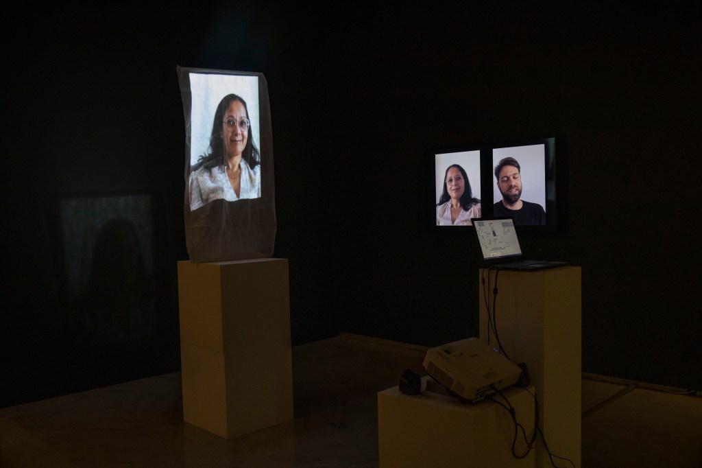 La videoinstalación consta de una proyeccion documental que integra entrevistas, still-films y film-stills que componen un retrato colectivo a partir de la experiencia de tránsito y el esfuerzo por integrarse a la sociedad de cinco personas migrantes residentes en Málaga y cuyo cuerpo emocional se ve atrapado en el tiempo de lo virtual. Por otra parte, un segundo vídeo -compuesto por dos proyecciones que converguen en una superficie flotante- componen una imagen fantasmagórica que se transforma en función del sonido del entorno. Dicho sonido pone en relación la voz registrada de los retratados con el sonido producido en tiempo real por el público que visita la sala de exposiciones.