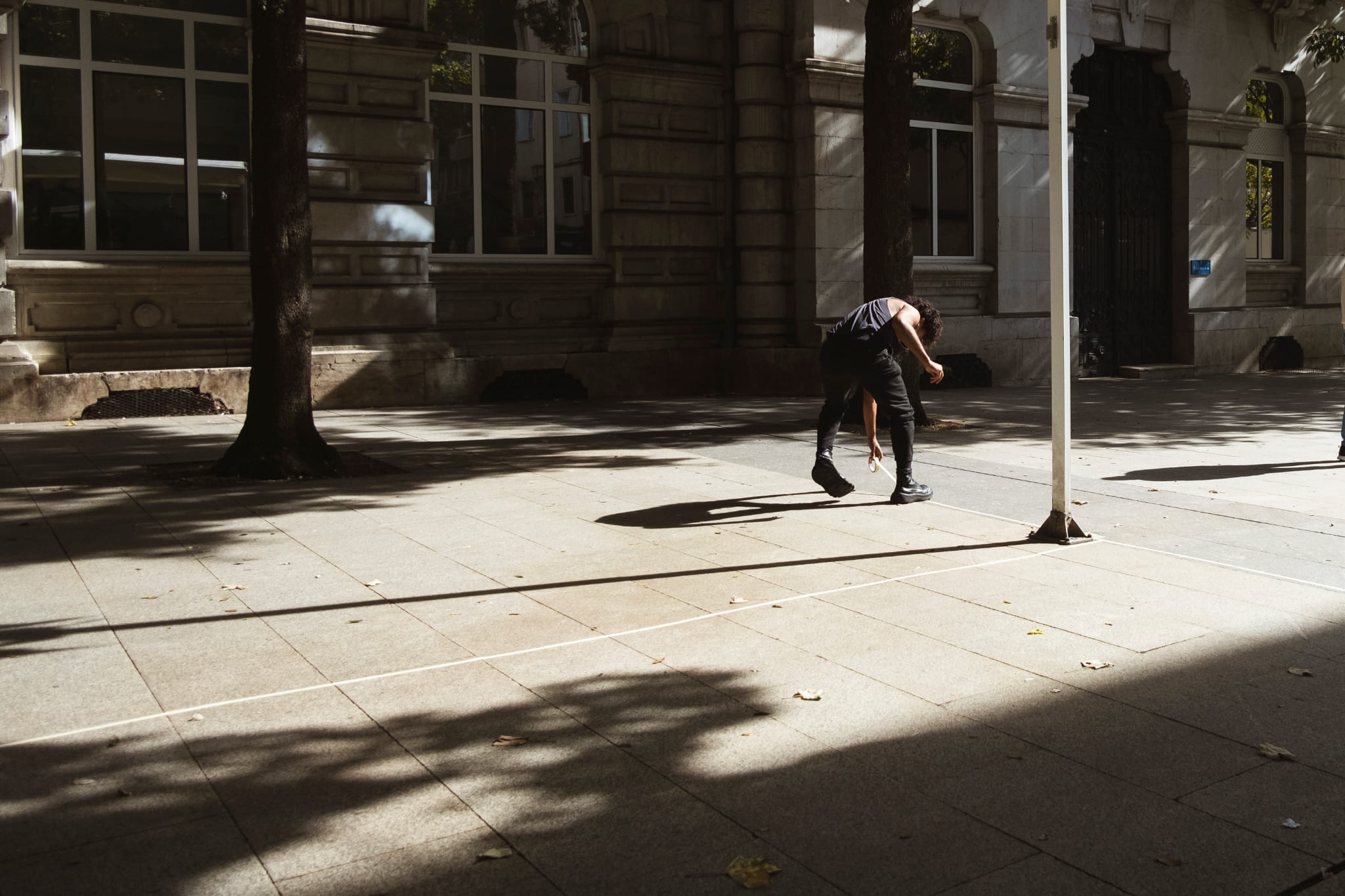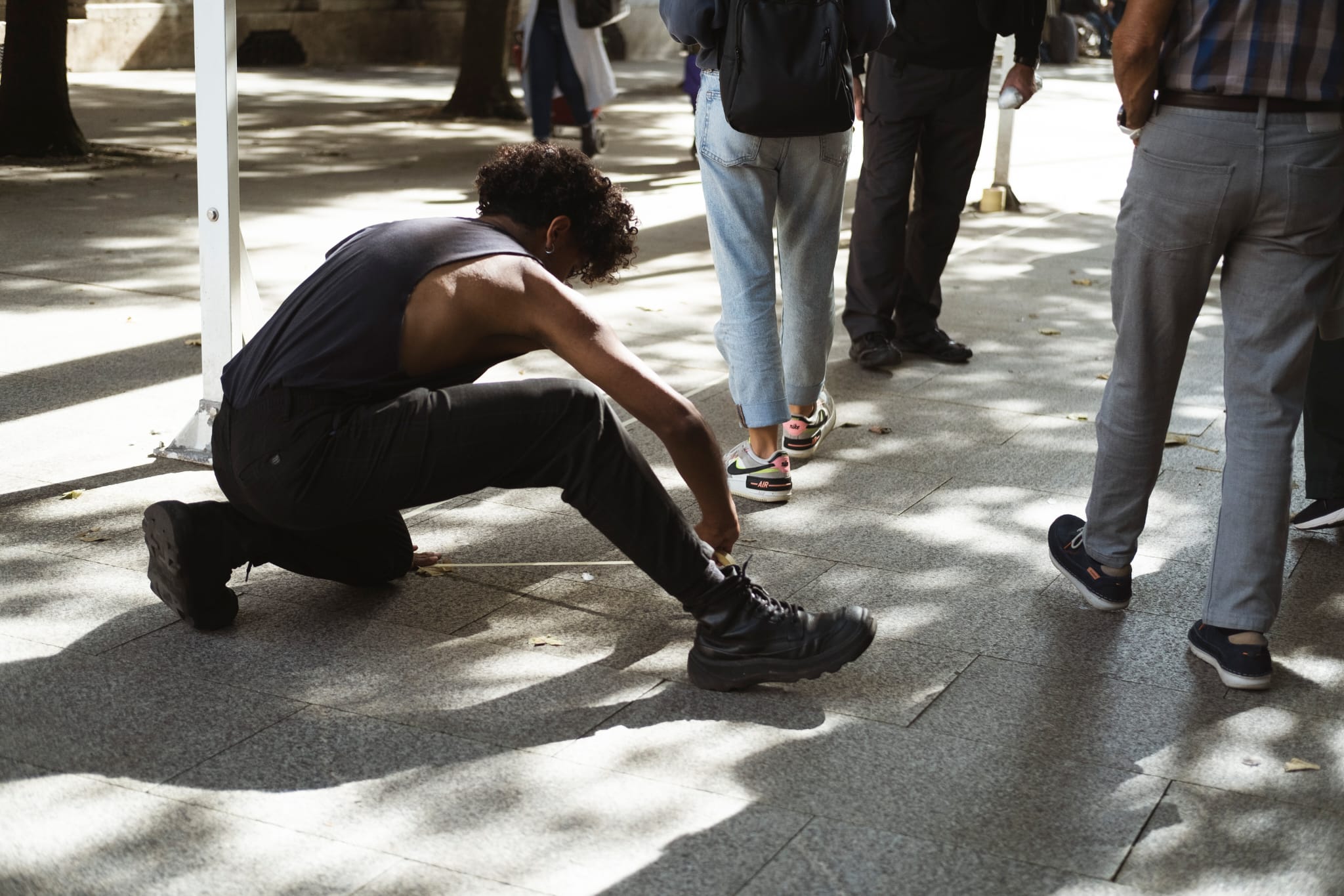Este es el espacio del arte de acción se desarrolla en dos partes, una a cada costado del ayuntamiento de Santander, España. Usando cinta de carrocero se dibujan límites en el espacio con el fin de establecer vínculos entre el preformer y el público. La pieza tiene un componente didáctico y busca aproximarse el lenguaje de la performance desde un punto de vista metaartístico. En paralelo se trabaja una reflexión sobre las etiquetas con las que el artista define su propia identidad, propiciando un espacio de confianza para que el público pase a participar, posicionandose física y simbólicamente respecto a dichas etiquetas y participen en un proceso de autodefinición que cuestiona las categorias binarias con las que habitualemnte nos definimos.