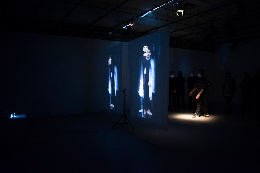 La obra radica en la suma como vehículo para convertirse en nadie. Cuatro personas se encuentran suspendidas en las pantallas, mediante un dispositivo que recoge la imagen en directo, el espectadore se halla reflejade sobre los otros cuerpos, entremezclándose, convirtiéndose en un cúmulo de identidades que renuncian a la individualidad para convertirse en una masa sin nombre.
